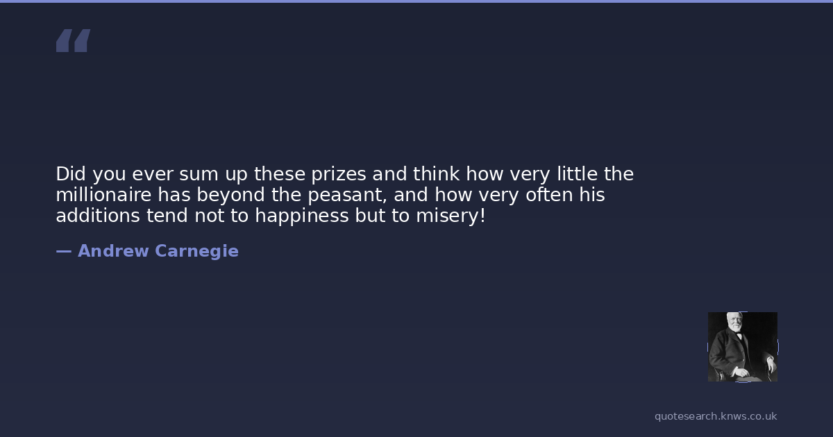 Did you ever sum up these prizes and think how very little the millionaire has beyond the peasant, and how very often his additions tend not to happiness but to misery!