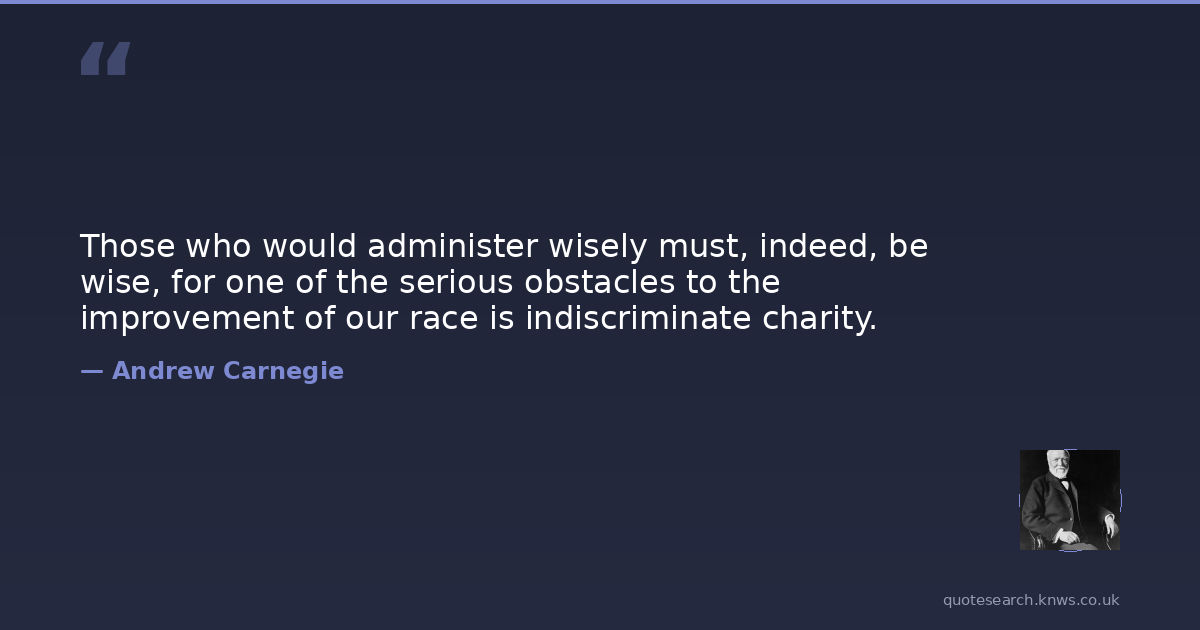 Those who would administer wisely must, indeed, be wise, for one of the serious obstacles to the improvement of our race is indiscriminate charity.