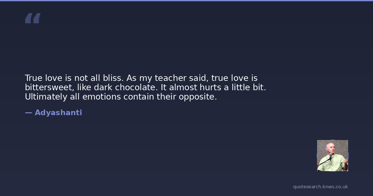 True love is not all bliss. As my teacher said, true love is bittersweet, like dark chocolate. It almost hurts a little bit. Ultimately all emotions contain their opposite.