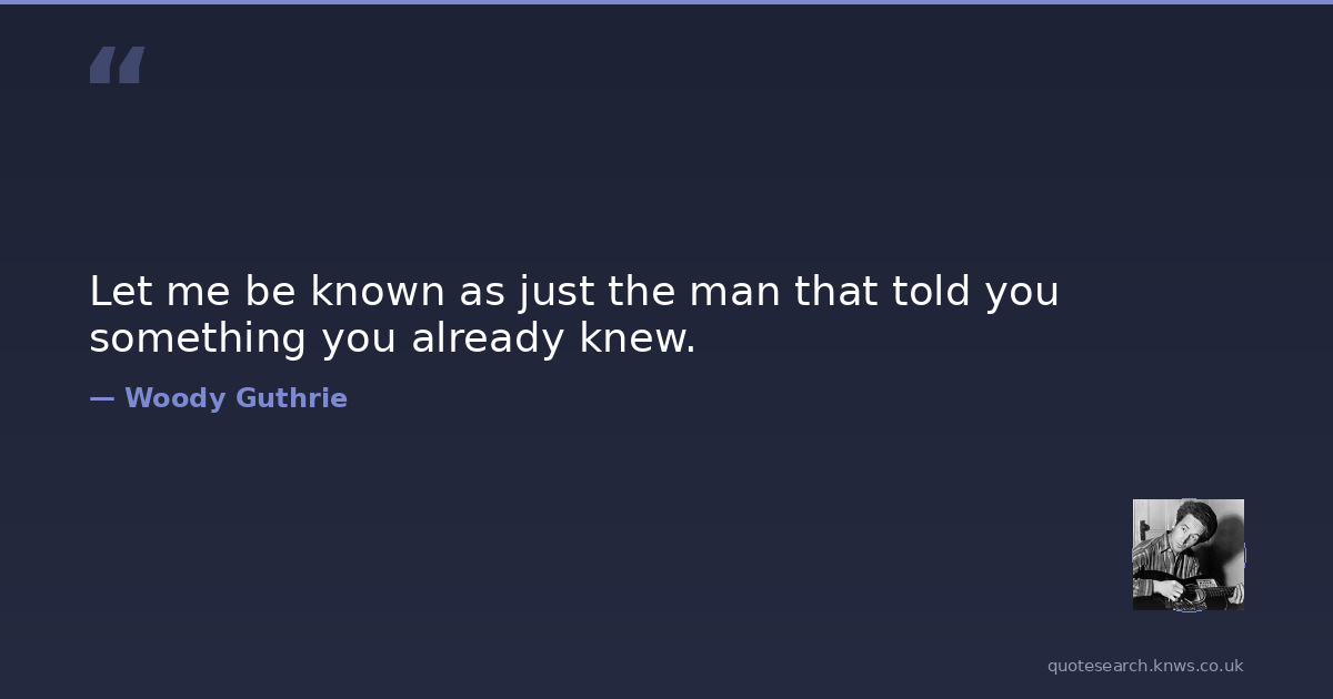 Woody Guthrie was a 20th-century American singer-songwriter. Woodrow Wilson Guthrie was an American singer, songwriter, and composer widely considered one of the most significant figures in American folk music. His work focused on themes of American socialism and anti-fascism and has inspired many generations politically and musically with songs such as "This Land Is Your Land" and "Tear the Fascists Down". Read more on Wikipedia →