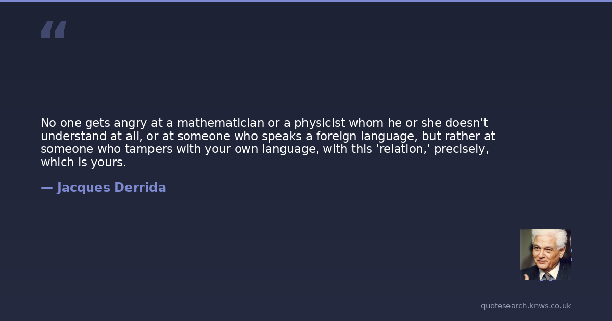 No one gets angry at a mathematician or a physicist whom he or she doesn't understand at all, or at someone who speaks a foreign language, but rather at someone who tampers with your own language, with this 'relation,' precisely, which is yours.