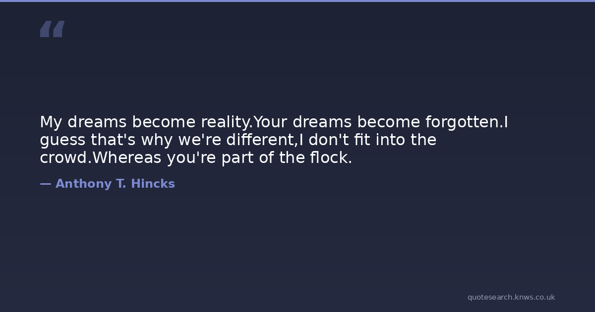 My dreams become reality.Your dreams become forgotten.I guess that's why we're different,I don't fit into the crowd.Whereas you're part of the flock.