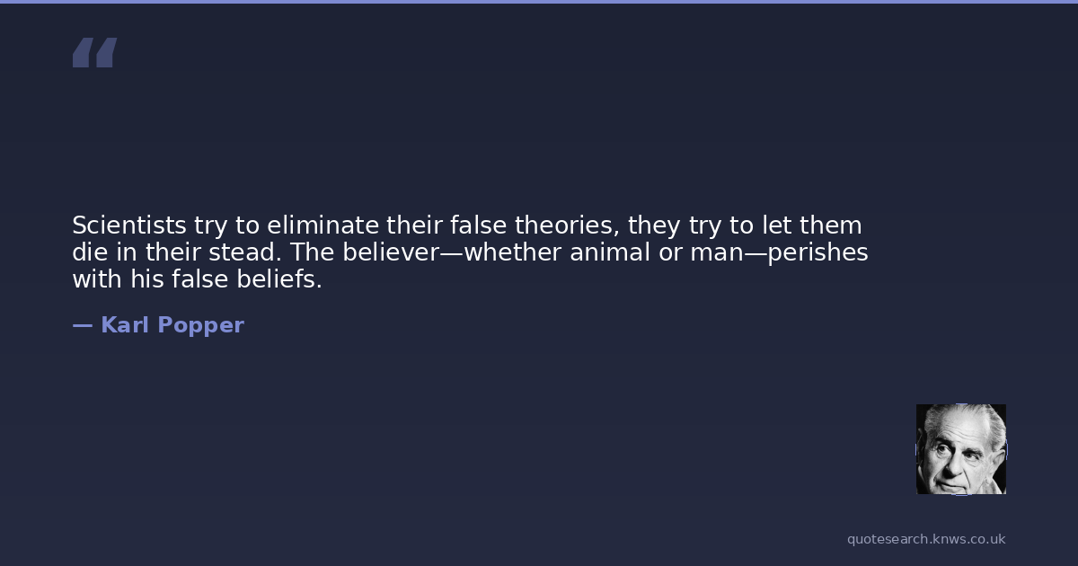Scientists try to eliminate their false theories, they try to let them die in their stead. The believer—whether animal or man—perishes with his false beliefs.