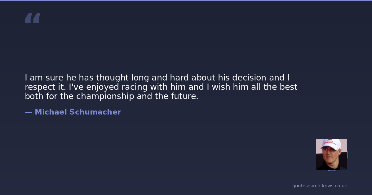 I am sure he has thought long and hard about his decision and I respect it. I've enjoyed racing with him and I wish him all the best both for the championship and the future.