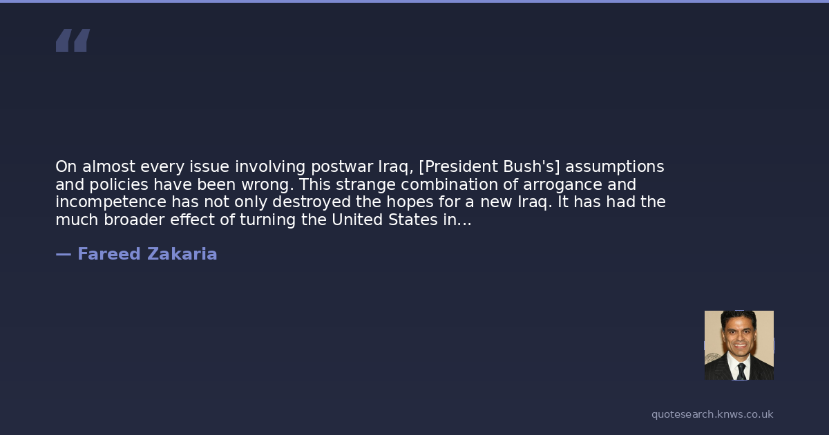 On almost every issue involving postwar Iraq, [President Bush's] assumptions and policies have been wrong. This strange combination of arrogance and incompetence has not only destroyed the hopes for a new Iraq. It has had the much broader effect of turning the United States into an international outlaw.