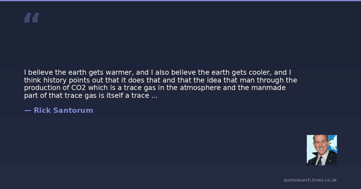 I believe the earth gets warmer, and I also believe the earth gets cooler, and I think history points out that it does that and that the idea that man through the production of CO2 which is a trace gas in the atmosphere and the manmade part of that trace gas is itself a trace gas is somehow responsible for climate change is, I think, just patently absurd when you consider all of the other factors, El Niño, La Niña, sunspots, you know, moisture in the air. There's a variety of factors that contribute to the earth warming and cooling, and to me, this is an opportunity for the left to create — it's really a beautifully concocted scheme because they know that the earth is gonna cool and warm. And so it's been on a warming trend so they said, Oh, let's take advantage of that and say that we need the government to come in and regulate your life some more because it's getting warmer. Just like they did in the '70s when it was getting cooler. They needed the government to come in and regulate your life because it's getting cooler. It's just an excuse for more government control of your life. And I've never been for any scheme or even accepted the junk science behind the whole narrative.