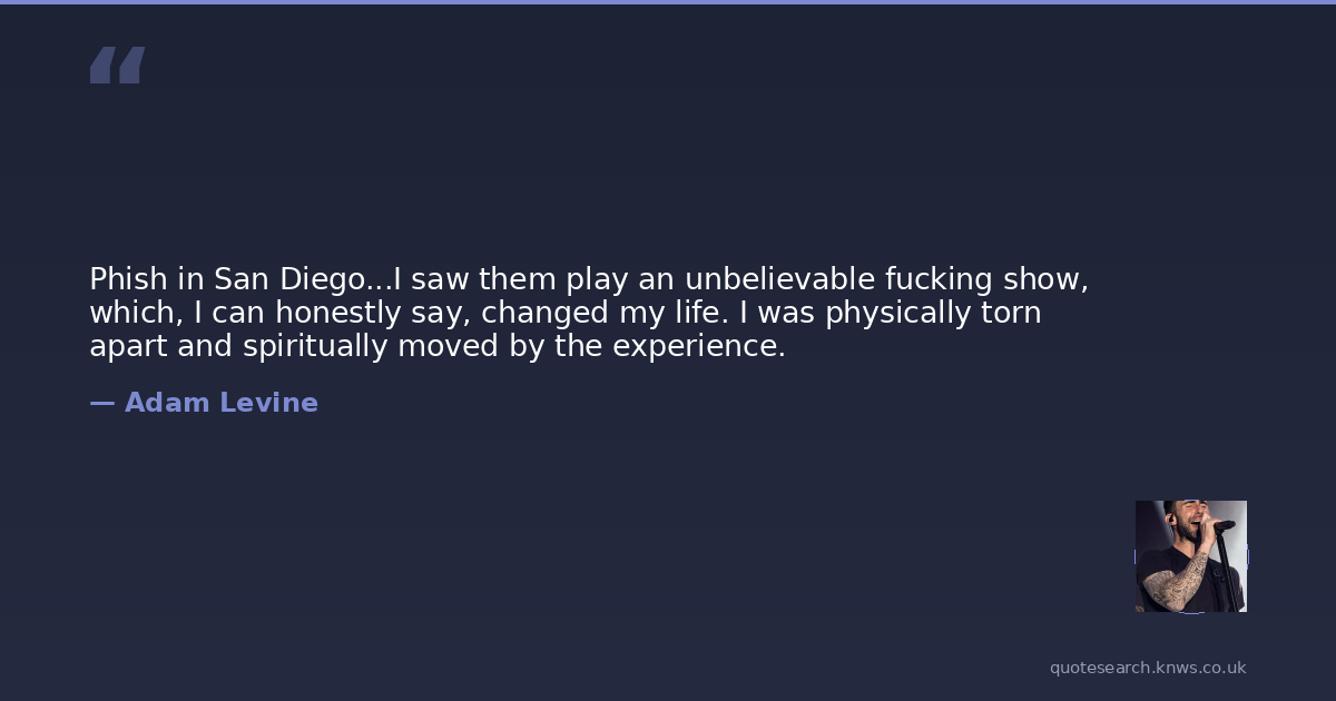 Phish in San Diego...I saw them play an unbelievable fucking show, which, I can honestly say, changed my life. I was physically torn apart and spiritually moved by the experience.