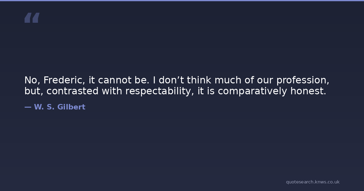 No, Frederic, it cannot be. I don’t think much of our profession, but, contrasted with respectability, it is comparatively honest.