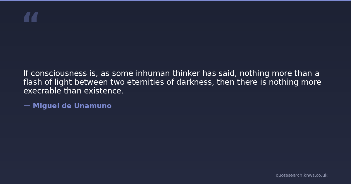 If consciousness is, as some inhuman thinker has said, nothing more than a flash of light between two eternities of darkness, then there is nothing more execrable than existence.