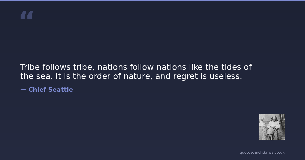 Tribe follows tribe, nations follow nations like the tides of the sea. It is the order of nature, and regret is useless.
