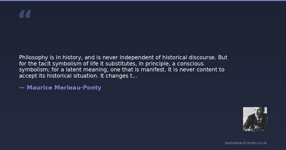 Philosophy is in history, and is never independent of historical discourse. But for the tacit symbolism of life it substitutes, in principle, a conscious symbolism; for a latent meaning, one that is manifest. It is never content to accept its historical situation. It changes this situation by revealing it to itself.