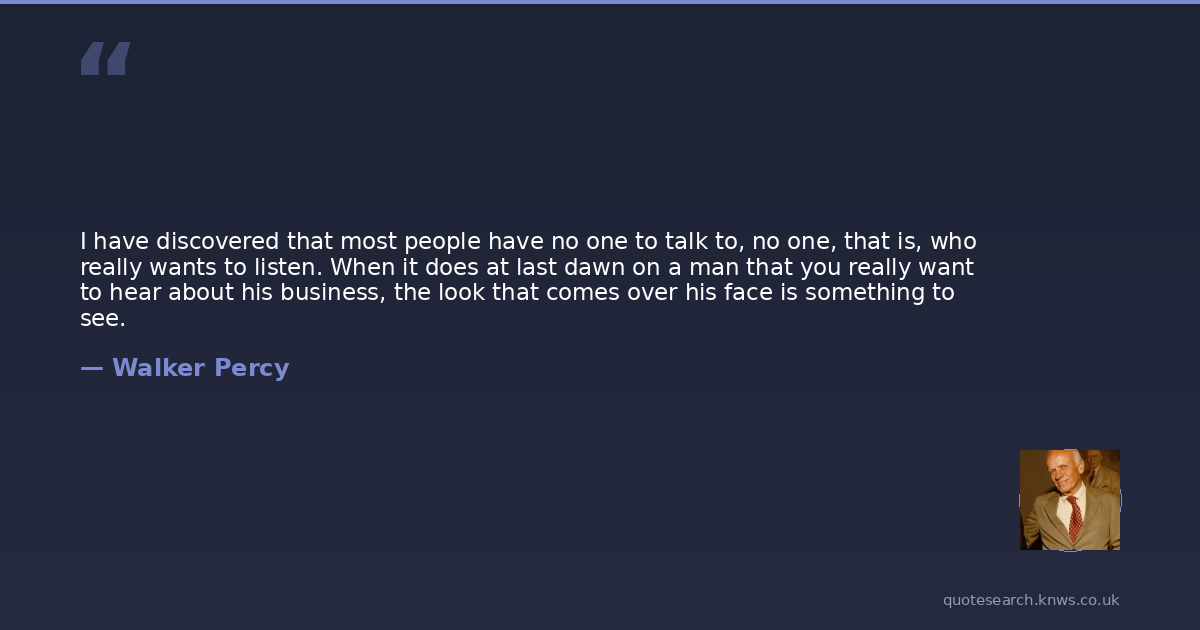 Walker Percy was a 20th-century American novelist. Walker Percy, OblSB was an American writer whose interests included philosophy and semiotics. Percy is noted for his philosophical novels set in and around New Orleans; his first, The Moviegoer, won the National Book Award for Fiction. Read more on Wikipedia →