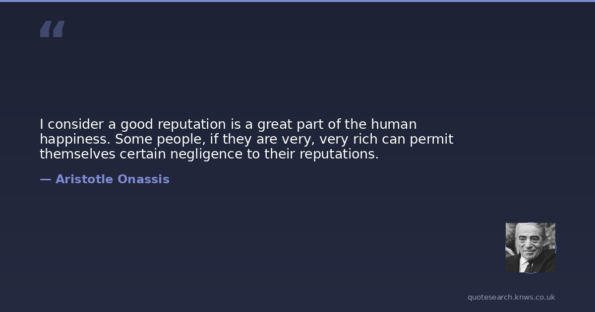 I consider a good reputation is a great part of the human happiness. Some people, if they are very, very rich can permit themselves certain negligence to their reputations.