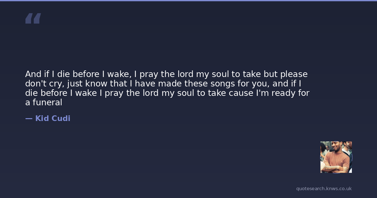 And if I die before I wake, I pray the lord my soul to take but please don't cry, just know that I have made these songs for you, and if I die before I wake I pray the lord my soul to take cause I'm ready for a funeral