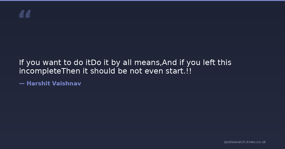 If you want to do itDo it by all means,And if you left this incompleteThen it should be not even start.!! motivational-quotes Download Image Share on X Share on Facebook Copy Link