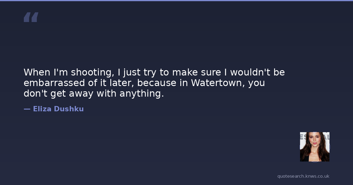 When I'm shooting, I just try to make sure I wouldn't be embarrassed of it later, because in Watertown, you don't get away with anything.