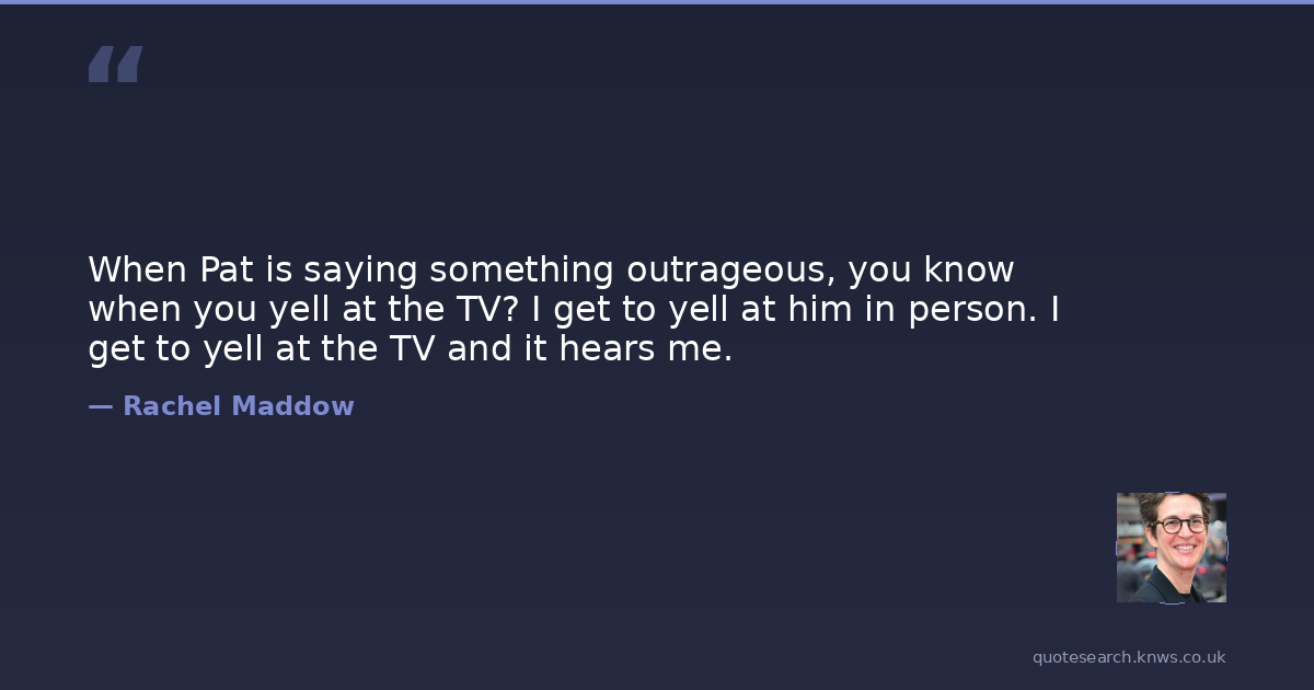 When Pat is saying something outrageous, you know when you yell at the TV? I get to yell at him in person. I get to yell at the TV and it hears me.