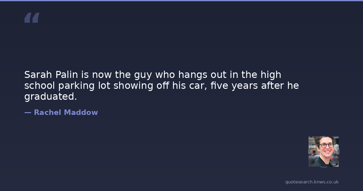 Sarah Palin is now the guy who hangs out in the high school parking lot showing off his car, five years after he graduated.