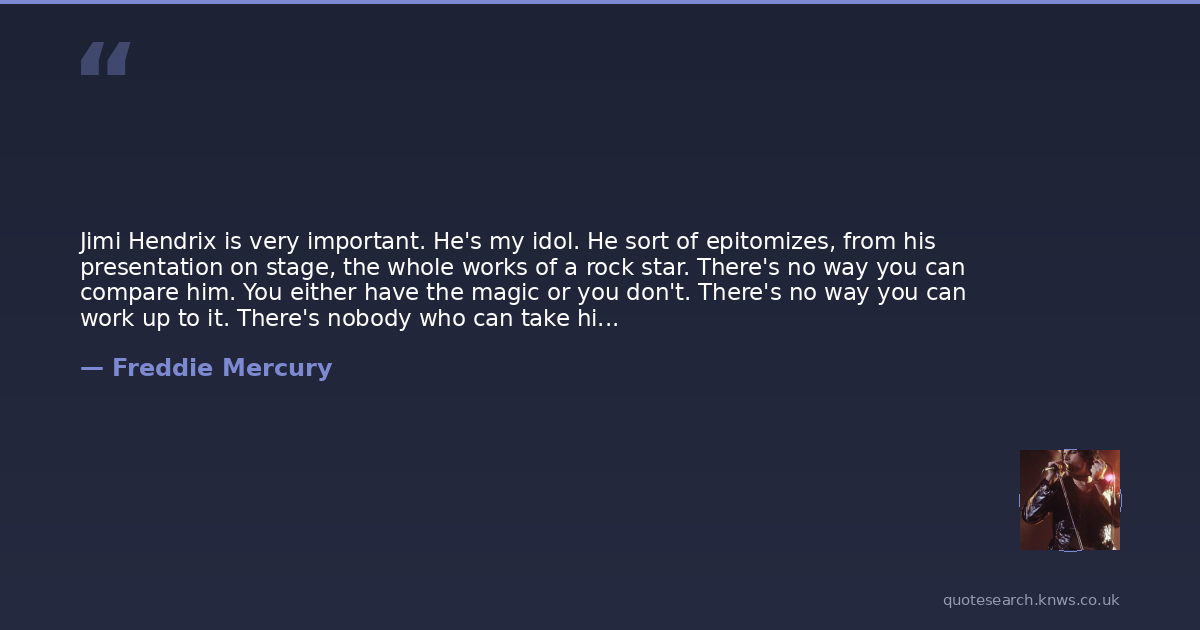 Jimi Hendrix is very important. He's my idol. He sort of epitomizes, from his presentation on stage, the whole works of a rock star. There's no way you can compare him. You either have the magic or you don't. There's no way you can work up to it. There's nobody who can take his place.