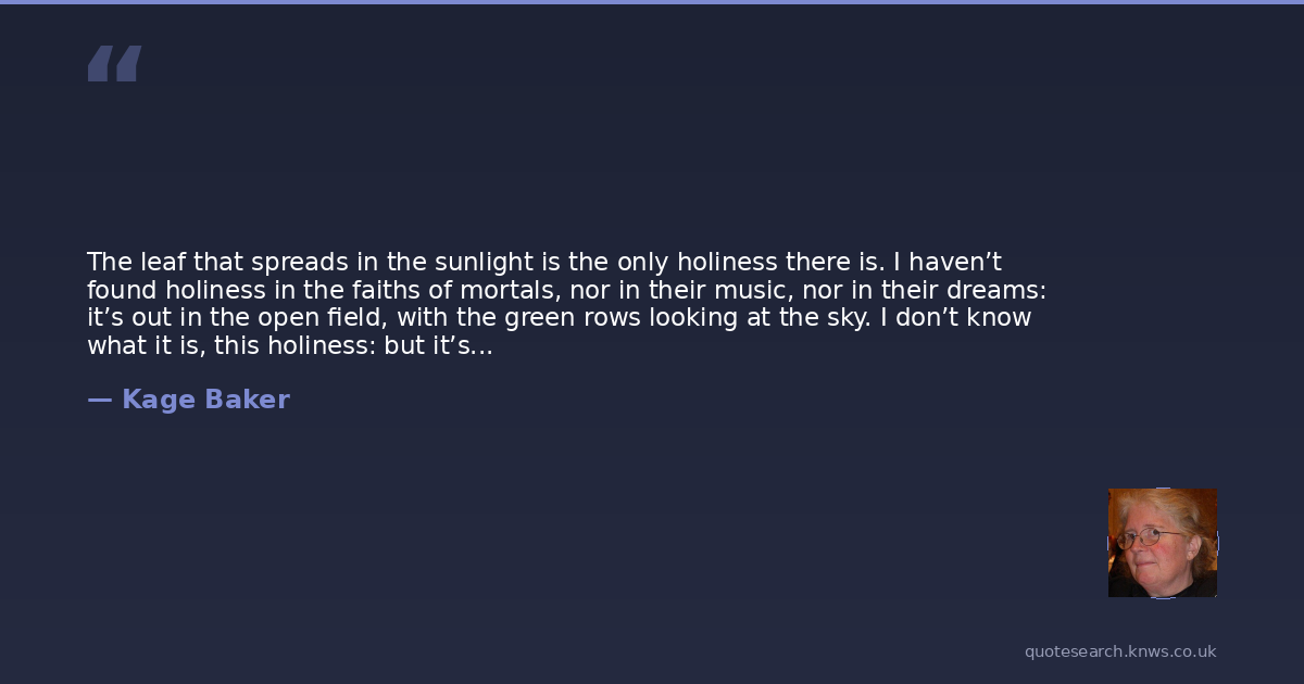 The leaf that spreads in the sunlight is the only holiness there is. I haven’t found holiness in the faiths of mortals, nor in their music, nor in their dreams: it’s out in the open field, with the green rows looking at the sky. I don’t know what it is, this holiness: but it’s there, and it looks at the sky.