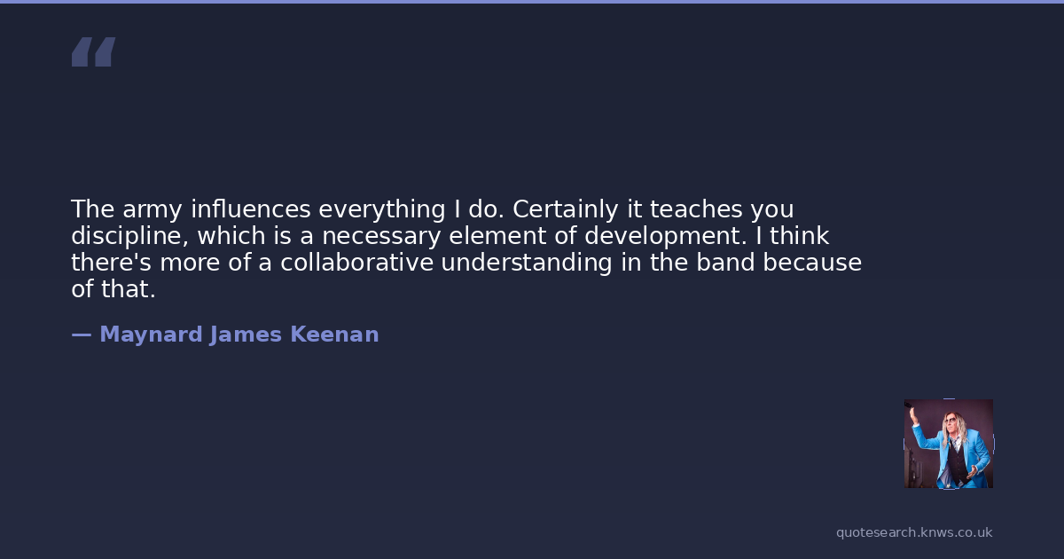 The army influences everything I do. Certainly it teaches you discipline, which is a necessary element of development. I think there's more of a collaborative understanding in the band because of that.