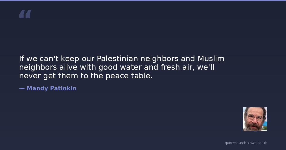 If we can't keep our Palestinian neighbors and Muslim neighbors alive with good water and fresh air, we'll never get them to the peace table.