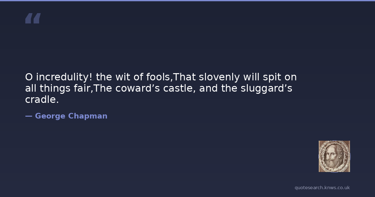 O incredulity! the wit of fools,That slovenly will spit on all things fair,The coward’s castle, and the sluggard’s cradle.