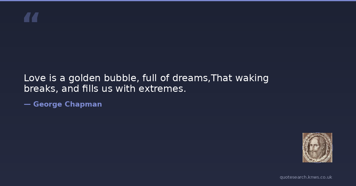 Love is a golden bubble, full of dreams,That waking breaks, and fills us with extremes.
