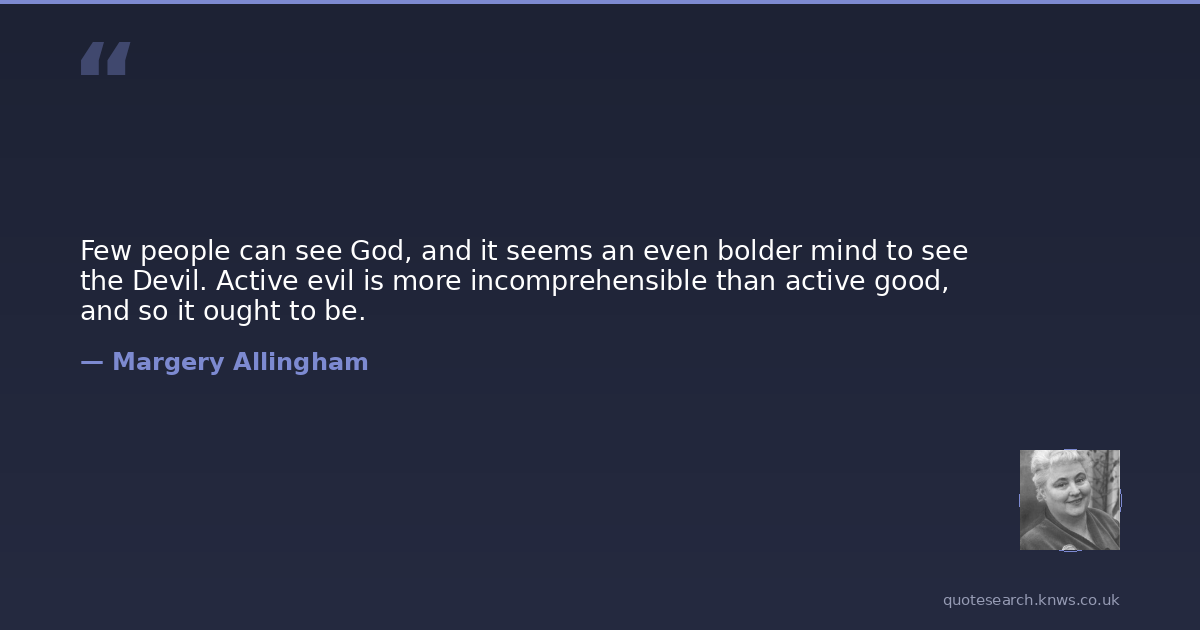 Few people can see God, and it seems an even bolder mind to see the Devil. Active evil is more incomprehensible than active good, and so it ought to be.