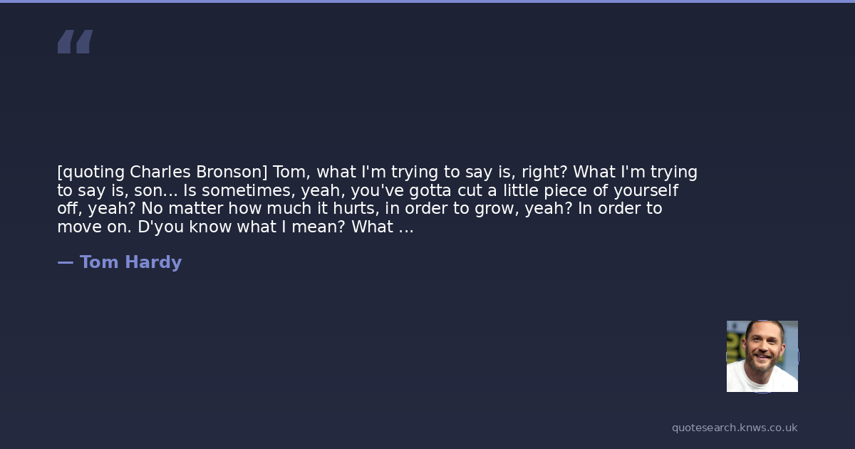 [quoting Charles Bronson] Tom, what I'm trying to say is, right? What I'm trying to say is, son... Is sometimes, yeah, you've gotta cut a little piece of yourself off, yeah? No matter how much it hurts, in order to grow, yeah? In order to move on. D'you know what I mean? What are you having for your tea?