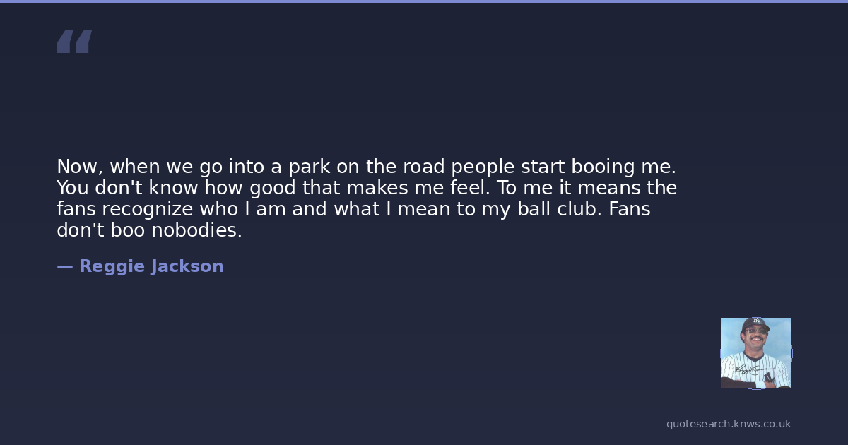 Now, when we go into a park on the road people start booing me. You don't know how good that makes me feel. To me it means the fans recognize who I am and what I mean to my ball club. Fans don't boo nobodies.