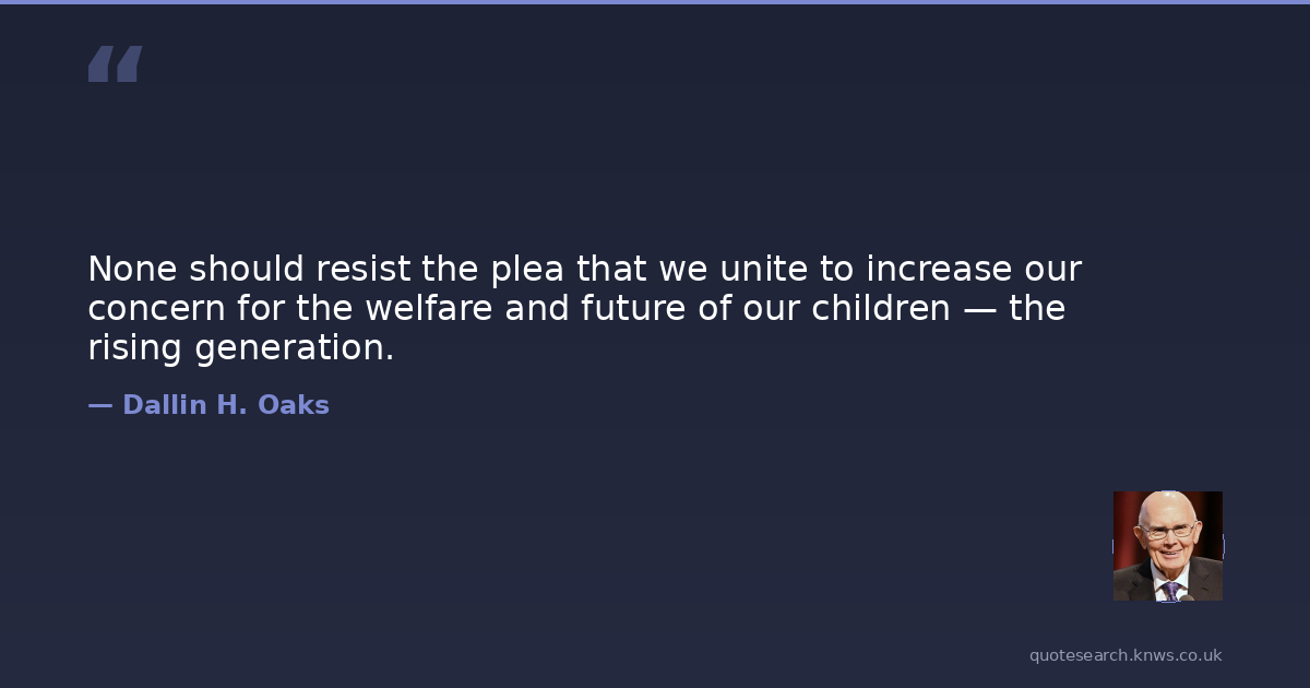 None should resist the plea that we unite to increase our concern for the welfare and future of our children — the rising generation.
