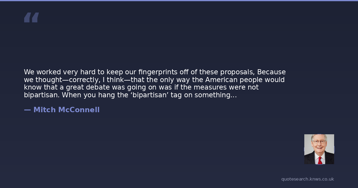 We worked very hard to keep our fingerprints off of these proposals, Because we thought—correctly, I think—that the only way the American people would know that a great debate was going on was if the measures were not bipartisan. When you hang the ‘bipartisan’ tag on something, the perception is that differences have been worked out, and there’s a broad agreement that that’s the way forward. [2], The Atlantic, (January, 2011)