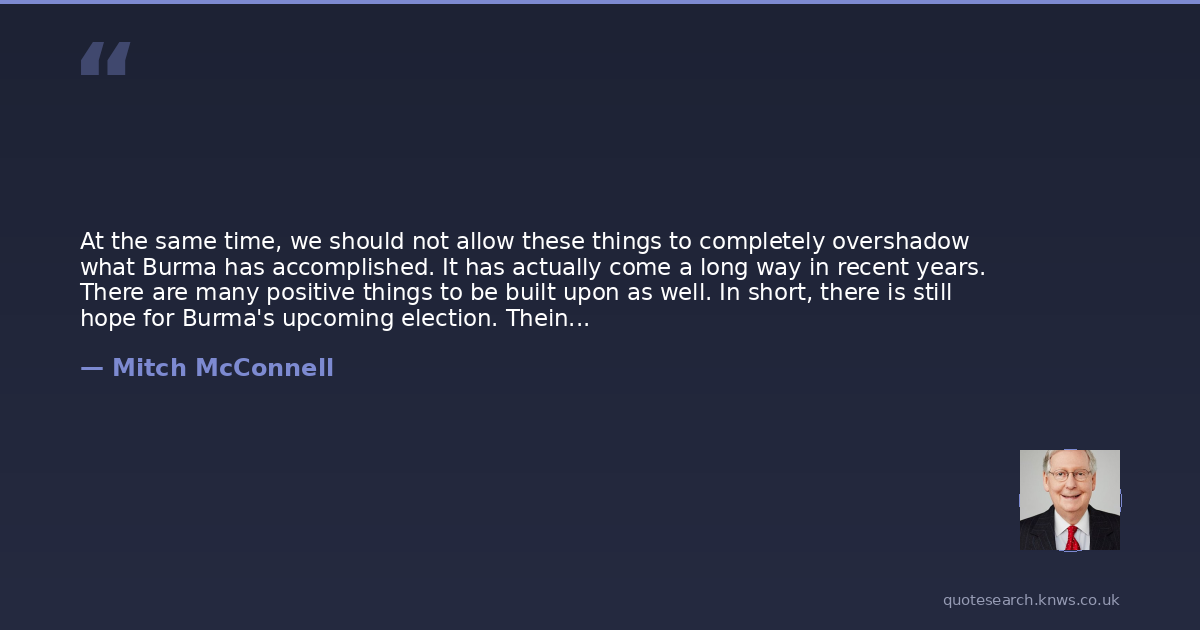 At the same time, we should not allow these things to completely overshadow what Burma has accomplished. It has actually come a long way in recent years. There are many positive things to be built upon as well. In short, there is still hope for Burma's upcoming election. Thein Sein's government has an opportunity to make these last few weeks of campaigning as free and as fair as possible. The Burmese Government can still hold an election that, despite the troubling things I mentioned, can be embraced by Burmese citizens and the international community alike. That will mean ensuring these final weeks of campaigning are as free and as fair as possible. That will mean ensuring freedom of expression is protected. These are the kinds of minimum goals that Burmese officials must strive toward in the final weeks of the campaign season. If the Burmese Government gets this right, if it ensures as free and fair an election as possible, with results accepted by competing parties, the government, and the military, that would go a long way toward reassuring Burma's friends around the globe that it remains committed to political reform and progress in the bilateral relationship. Indeed, both the government and the military have committed to standing by the election results.