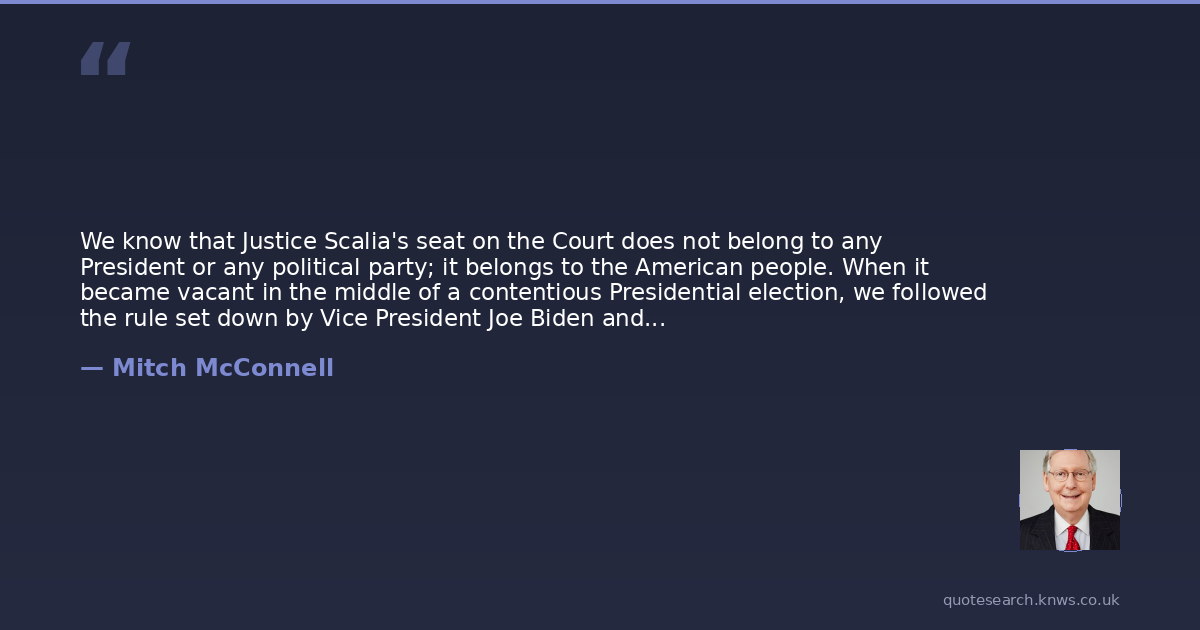 We know that Justice Scalia's seat on the Court does not belong to any President or any political party; it belongs to the American people. When it became vacant in the middle of a contentious Presidential election, we followed the rule set down by Vice President Joe Biden and Democratic Leader Senator Schumer, which said that Supreme Court vacancies arising in the midst of a Presidential election should not be considered until the campaign ends. It is the same rule, by the way, that President Obama's own legal counsel admitted she would have recommended had the shoe been on the other foot. I have been consistent all along that the next President, Democrat or Republican, should select the next nominee for the Supreme Court. I maintained that view even when many thought that particular President would be Hillary Clinton. But now the election season is over and we have a new President who has nominated a superbly qualified candidate to fill that ninth seat. So I would invite Democrats who spent many months insisting we need nine to join us in following through on that advice by giving the new President's nominee a fair consideration and an up-or-down vote, just as we did for past Presidents of both parties.
