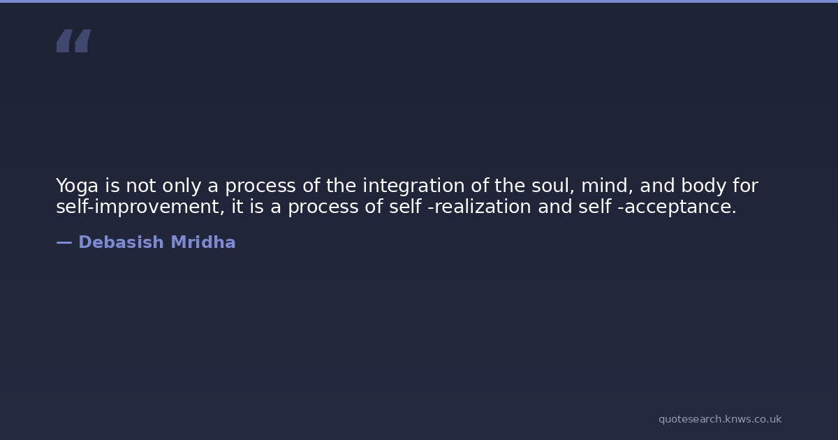 Yoga is not only a process of the integration of the soul, mind, and body for self-improvement, it is a process of self -realization and self -acceptance.