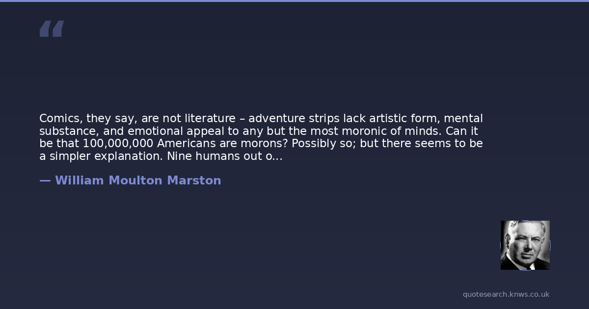 William Moulton Marston was American psychologist and writer. William Moulton Marston, also known by the pen name Charles Moulton, was an American psychologist who, with his wife Elizabeth Holloway, invented an early prototype of the polygraph. He was also known as a self-help author and comic book writer who created the character Wonder Woman. Read more on Wikipedia →