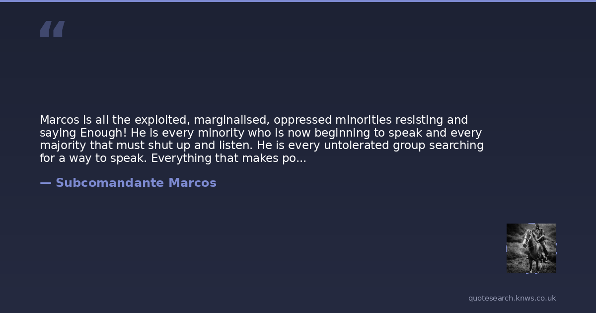 Marcos is all the exploited, marginalised, oppressed minorities resisting and saying Enough! He is every minority who is now beginning to speak and every majority that must shut up and listen. He is every untolerated group searching for a way to speak. Everything that makes power and the good consciences of those in power uncomfortable — this is Marcos.