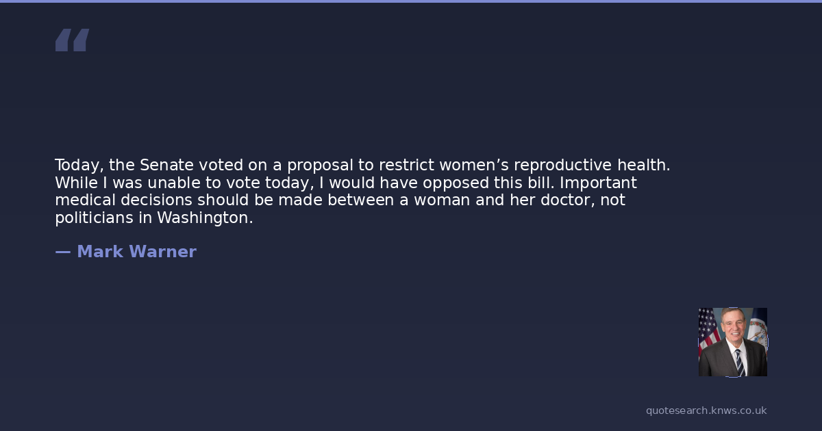 Today, the Senate voted on a proposal to restrict women’s reproductive health. While I was unable to vote today, I would have opposed this bill. Important medical decisions should be made between a woman and her doctor, not politicians in Washington.