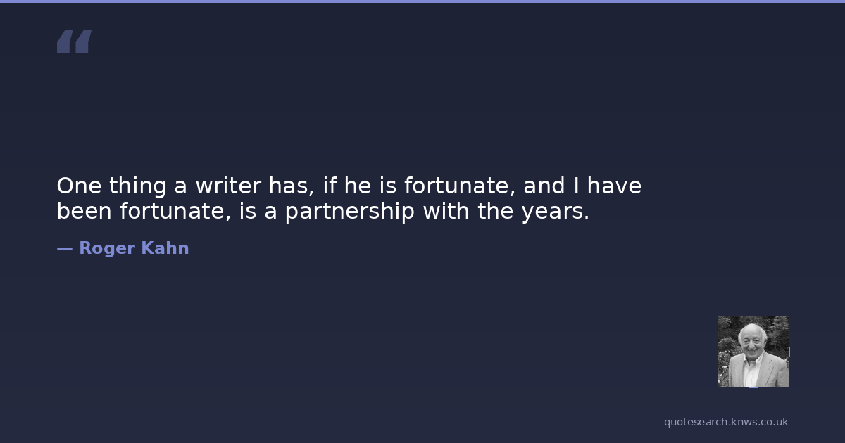 One thing a writer has, if he is fortunate, and I have been fortunate, is a partnership with the years.