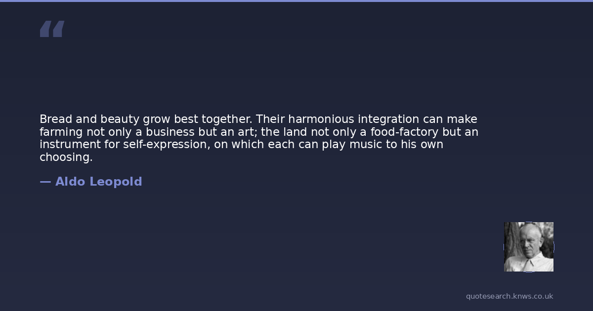Bread and beauty grow best together. Their harmonious integration can make farming not only a business but an art; the land not only a food-factory but an instrument for self-expression, on which each can play music to his own choosing.
