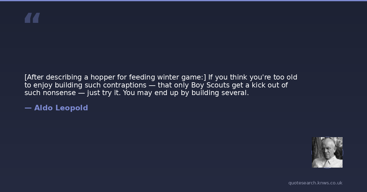 [After describing a hopper for feeding winter game:] If you think you're too old to enjoy building such contraptions — that only Boy Scouts get a kick out of such nonsense — just try it. You may end up by building several.
