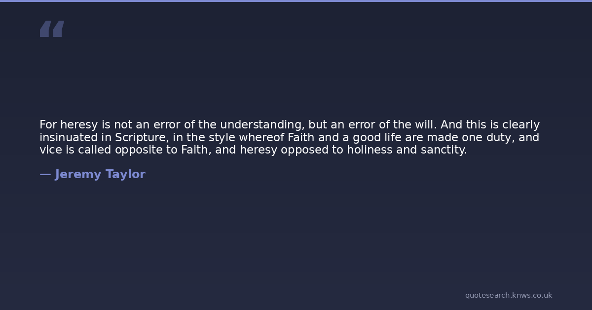 For heresy is not an error of the understanding, but an error of the will. And this is clearly insinuated in Scripture, in the style whereof Faith and a good life are made one duty, and vice is called opposite to Faith, and heresy opposed to holiness and sanctity.