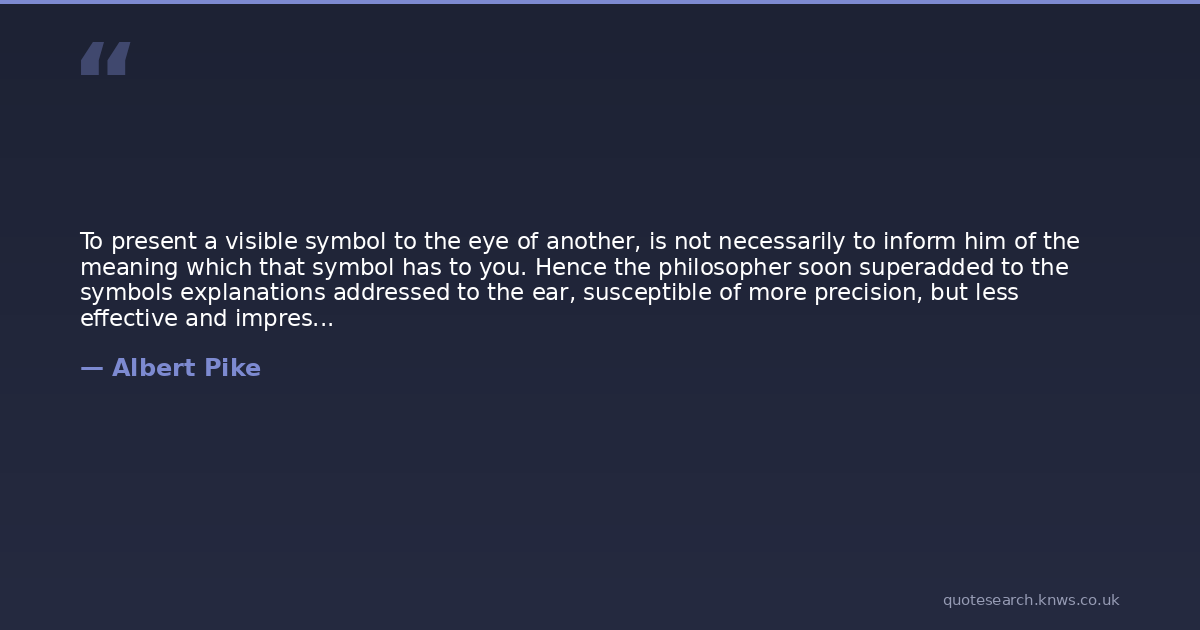 To present a visible symbol to the eye of another, is not necessarily to inform him of the meaning which that symbol has to you. Hence the philosopher soon superadded to the symbols explanations addressed to the ear, susceptible of more precision, but less effective and impressive than the painted or sculptured forms which he endeavored to explain. Out of these explanations grew by degrees a variety of narrations, whose true object and meaning were gradually forgotten, or lost in contradictions and incongruities. And when these were abandoned, and Philosophy resorted to definitions and formulas, its language was but a more complicated symbolism, attempting in the dark to grapple with and picture ideas impossible to be expressed. For as with the visible symbol, so with the word: to utter it to you does not inform you of the exact meaning which it has to me; and thus religion and philosophy became to a great extent disputes as to the meaning of words. The most abstract expression for Deity, which language can supply, is but a sign or symbol for an object beyond our comprehension, and not more truthful and adequate than the images of Osiris and Vishnu, or their names, except as being less sensuous and explicit We avoid sensuousness, only by resorting to simple negation. We come at last to define spirit by saying that it is not matter. Spirit is — spirit.