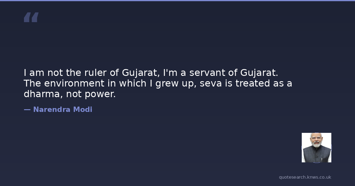 I am not the ruler of Gujarat, I'm a servant of Gujarat. The environment in which I grew up, seva is treated as a dharma, not power.