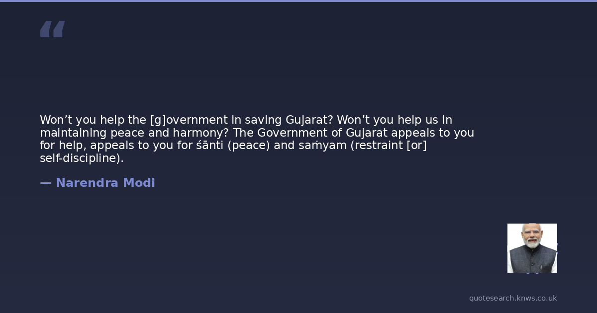 Won’t you help the [g]overnment in saving Gujarat? Won’t you help us in maintaining peace and harmony? The Government of Gujarat appeals to you for help, appeals to you for śānti (peace) and saṁyam (restraint [or] self-discipline).