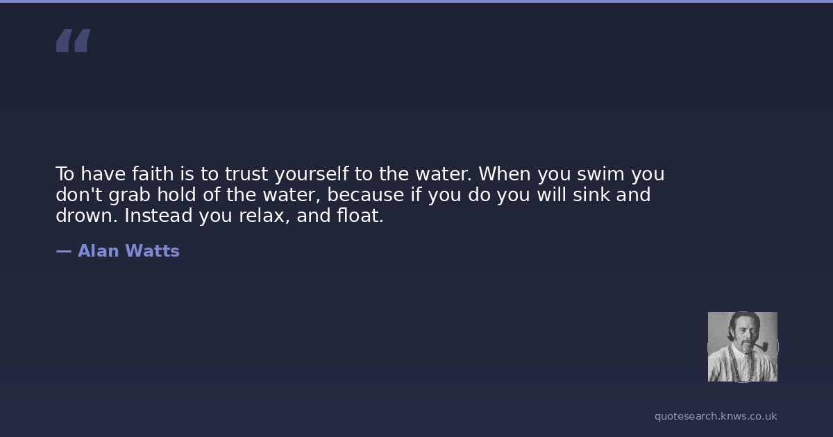 To have faith is to trust yourself to the water. When you swim you don't grab hold of the water, because if you do you will sink and drown. Instead you relax, and float.