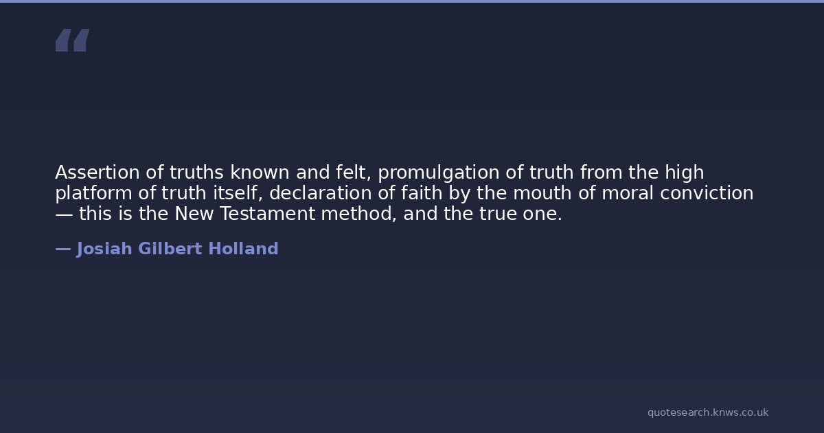 Assertion of truths known and felt, promulgation of truth from the high platform of truth itself, declaration of faith by the mouth of moral conviction — this is the New Testament method, and the true one.