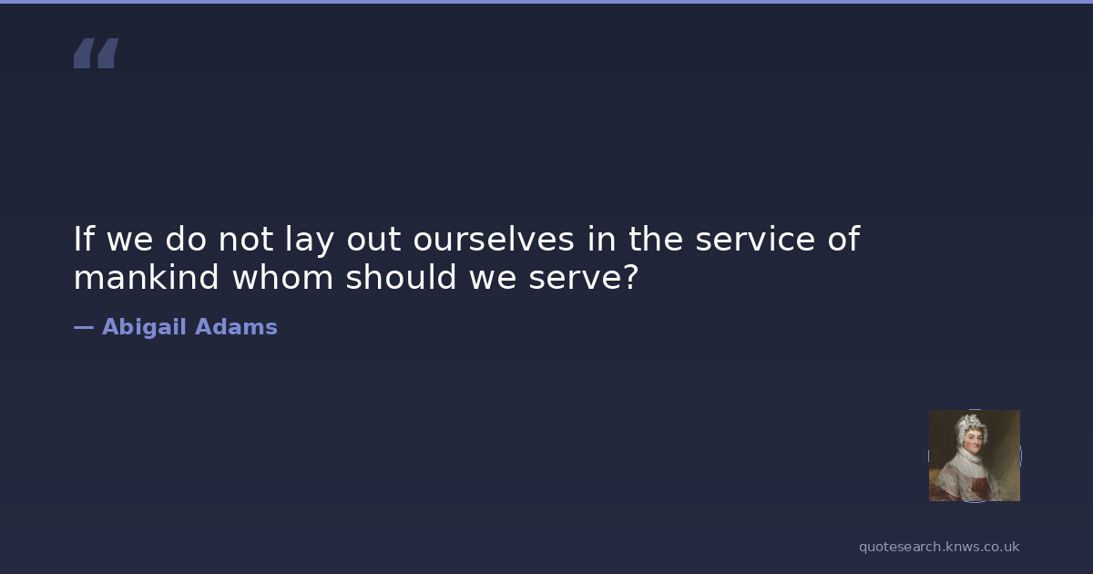 Abigail Adams was first lady of the united states from 1797 to 1801. Abigail Adams was the wife and closest advisor of John Adams, the second president of the United States, and the mother of John Quincy Adams, the sixth president of the United States. She was a founder of the United States, and was both the first second lady and second first lady of the United States, although such titles were not used at the time. Read more on Wikipedia →