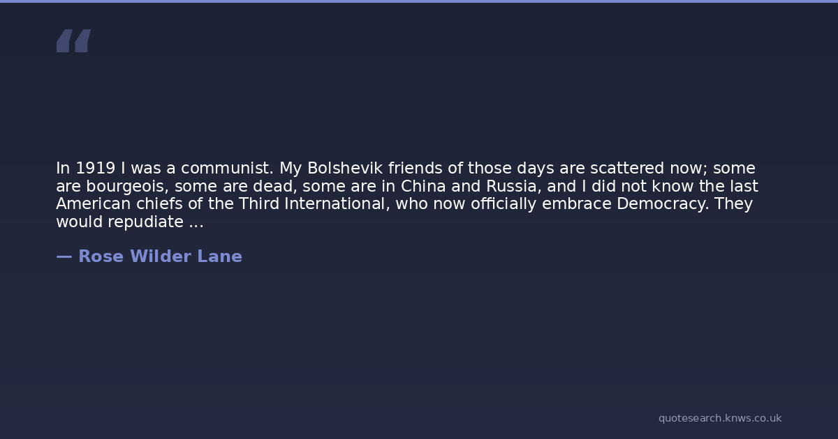 In 1919 I was a communist. My Bolshevik friends of those days are scattered now; some are bourgeois, some are dead, some are in China and Russia, and I did not know the last American chiefs of the Third International, who now officially embrace Democracy. They would repudiate me even as a renegade comrade, for I was never a member of The Party. But it was merely an accident that I was not.
